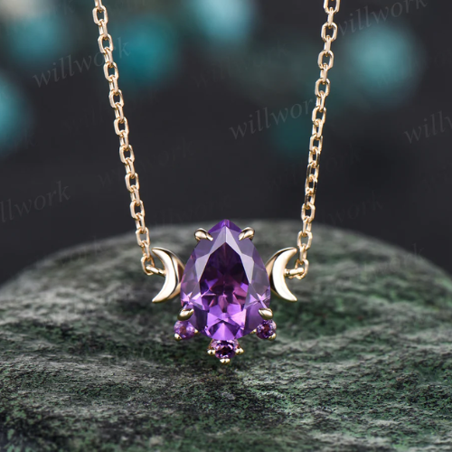 The Teardrop Natural Amethyst Necklace from WillWork Jewelry is a delicate and meaningful piece that combines elegance with a touch of nature-inspired design. Crafted in solid 14K yellow gold, this necklace features a pear-shaped natural stone as its centerpiece.